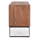 Struttura in legno di acacia, schienali in compensato. Frontali ante intarsiati e lavorati a mano. Finitura acrilica protettiva. Maniglie e gambe in acciaio
