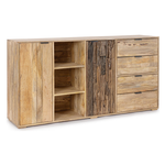 Struttura in legno mango, schienale in compensato. Frontale ante in legno di mango o riciclato. Finitura acrilica protettiva. Maniglie in metallo. Il prodotto in legno riciclato è caratterizzato dalla presenza di tasselli in legno di diverse specie e colore. Eventuali fessure, crepe o imperfezioni, che possono generarsi anche nel corso del tempo, sono caratteristiche di questo materiale e rendono ogni pezzo unico e originale