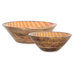 Insalatiera Legno Set 2 pz (25x10 e 30x14 cm) righe RELAX Naturale e Arancione 0551031