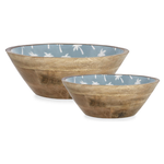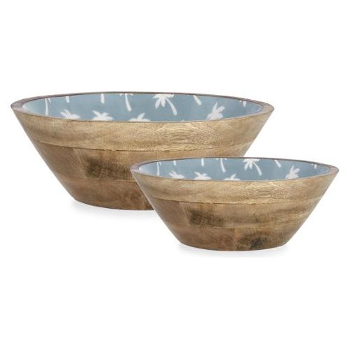 Insalatiera Legno Set 2 pz (25x10 e 30x14 cm) palme KERAN Naturale e Azzurro 0551013