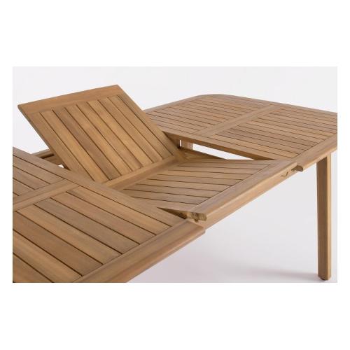 Legno di acacia FSC 100%, finitura a olio (effetto teak). Allungabile. Viteria in acciaio galvanizzato. Gambe da assemblare