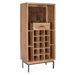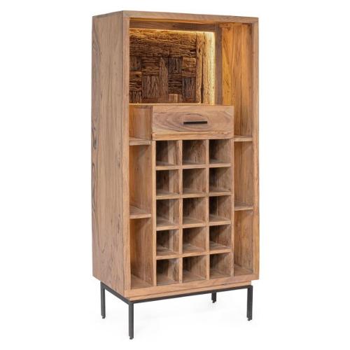 Struttura in legno di acacia, schienali in compensato, interno a vista in legno riciclato. Finitura acrilica protettiva. Ante con cerniera chiusura ammortizzata. Maniglie e gambe in acciaio. Gambe da assemblare