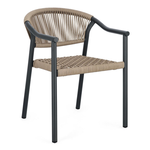Struttura in alluminio, verniciata a polvere (Poliestere), intreccio in fibra sintetica (TWisted). Impilabile