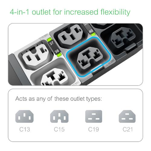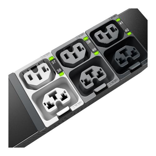 Le PDU per rack APC NetShelter Advanced forniscono una distribuzione affidabile dell'alimentazione alle apparecchiature informatiche nei rack di rete e/o server. Misurazione dell'alimentazione a livello di PDU tramite accesso remoto e display locale per la visibilità dell'alimentazione e la notifica di potenziali sovraccarichi. Le prese combinate 4 in 1 che possono essere utilizzate come uscite C13, C19, C15 o C21 garantiscono una flessibilità di implementazione senza precedenti. Massima densità di prese con 40 prese in un fattore di forma di 2,2".