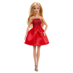 Il marchio Barbie festeggia l'80 anniversario di Mattel con una bambola da collezione in un look celebrativo! Barbie rende omaggio alla lunga tradizione dell'azienda nel mondo dei giochi in un abito da party rosso rubino con splendidi dettagli, come il fiocco celebrativo e il corpetto con design ispirato all'iconico logo dell'azienda. I sandali con il tacco argentati e la collana abbinata completano il look. I fan di Barbie e i bambini dai 3 anni in su adoreranno celebrare questa occasione speciale insieme alla bambola da collezione. La bambola non può reggersi in piedi da sola.