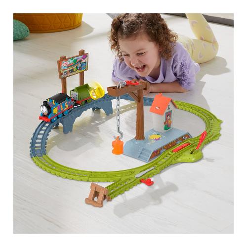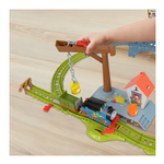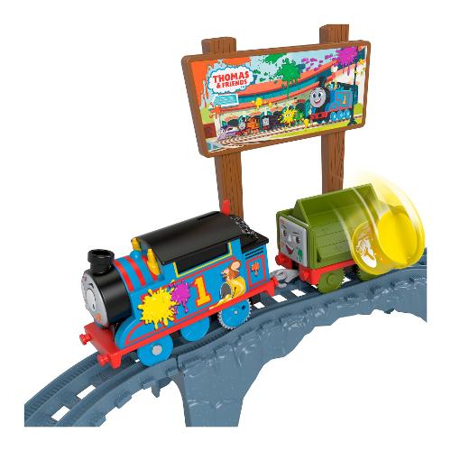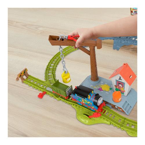I bambini in età prescolare possono far sfrecciare il loro amico Thomas attraverso Wayland Station per prendere e consegnare la vernice con questo treno motorizzato della serie Il Trenino Thomas™ e il set di binari Fisher-Price®. Sposta la levetta sulla locomotiva per far sfrecciare Thomas a tutta velocità sulla pista. Ma fai attenzione! Mentre Thomas traina il Vagone Combina Guai™ sul ponte, le taniche di vernice oscillano e cadono dal pianale.