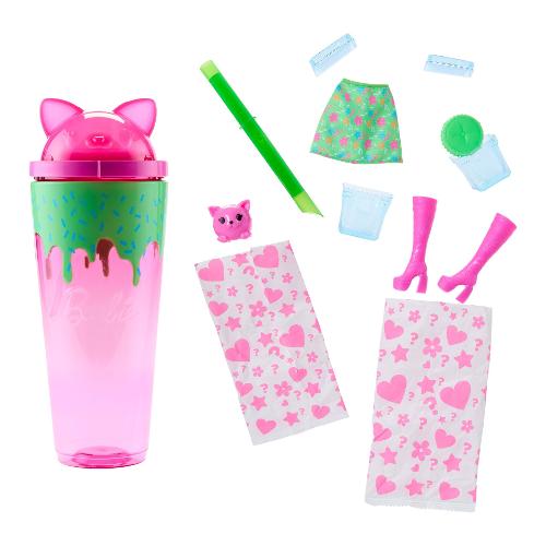 Le bambole Barbie Pop Reveal Serie Frullati offrono un'esperienza sensoriale con otto sorprese all'interno di un bicchiere ispirato al frullato! Svita il coperchio con le orecchie da animale e lo Slime scintillante, inserisci la cannuccia nella pellicola e spremi il divertimento. Rimuovi la pellicola sul bicchiere per rivelare una Barbie che profuma di frullato e altre sette sorprese! Quale bambola troverai? C'è un tenero unicorno, un simpatico gattino o un luminoso coniglietto. Nella confezione troverai inoltre due cubetti di ghiaccio riutilizzabili che si aprono per svelare una gonna o un paio di shorts e un paio di scarpe o stivaletti. I sacchettini misteriosi rivelano un cucciolo profumato coordinato, una cuccia e un cerchietto con orecchie da animale! Altre sorprese ti attendono con le trasformazioni cambia colore sul viso della bambola Barbie. I bambini vorranno collezionarle tutte! Ogni bambola è in vendita separatamente, secondo disponibilità. Le bambole non possono reggersi in piedi da sole.