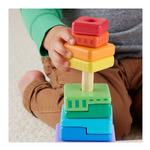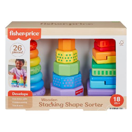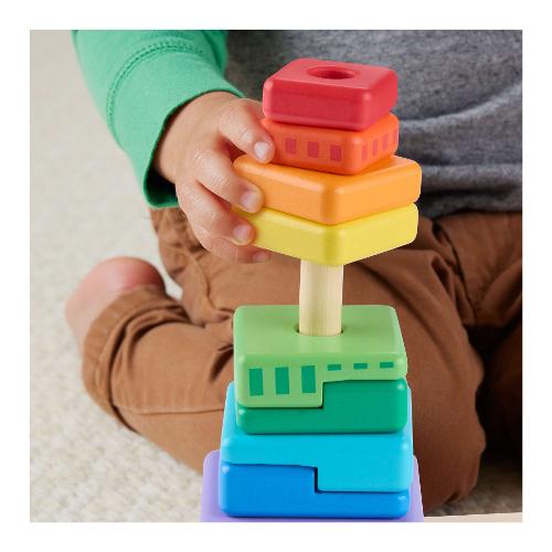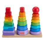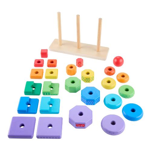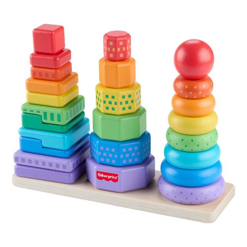 Il divertimento triplica con questo giocattolo per bambini Set Piramidi in Legno di Fisher-Price®. Questo set è dotato di anelli, ottagoni e rettangoli geometrici in 2 parti in legno semplici da afferrare, ordinare e impilare sulla base. Realizzato con legno proveniente da foreste ben gestite e certificate FSC®, questo giocattolo impilabile per l'età prescolare è un modo divertente per introdurre il bambino nel mondo delle dimensioni, dei colori, delle forme e altro ancora!