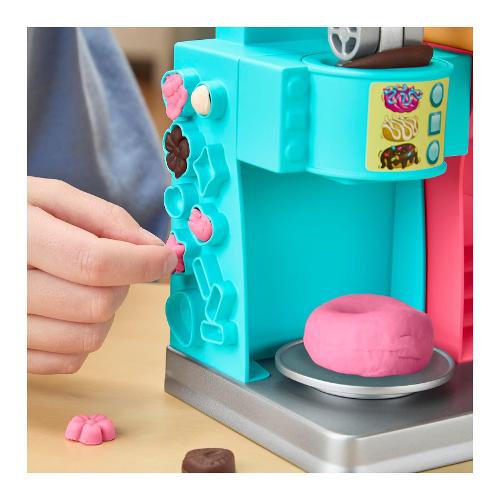 È il luogo perfetto in cui bambini e bambine possono realizzare i loro sogni più fantasiosi a forma di ciambella! Scegli una delle tre forme, aggiungi 56 g di pasta modellabile Play-Doh e chiudi il coperchio. Gira la maniglia in senso orario finché il coperchio non si apre e una ciambella Play-Doh cade sulla base. Usa la macchina per la glassa o il tagliapasta per la glassa per decorare e personalizzare le tue creazioni da pasticciere. Schiaccia con il retro della spatola un mucchietto di pasta modellabile per creare dei finti confettini. Scegli lo stampo a forma di ciambella ripiena e inserisci 2 o più colori nel playset per creare un ripieno di marmellata o cioccolato finto.