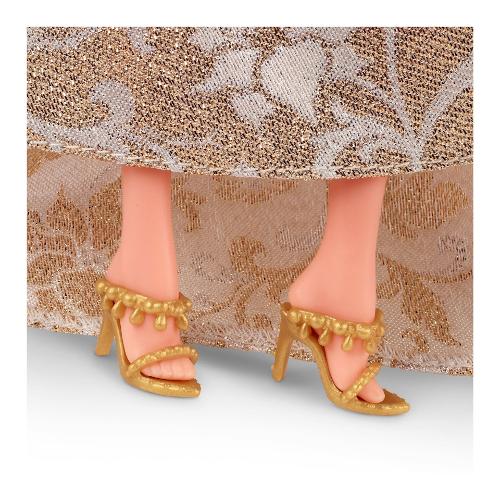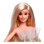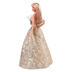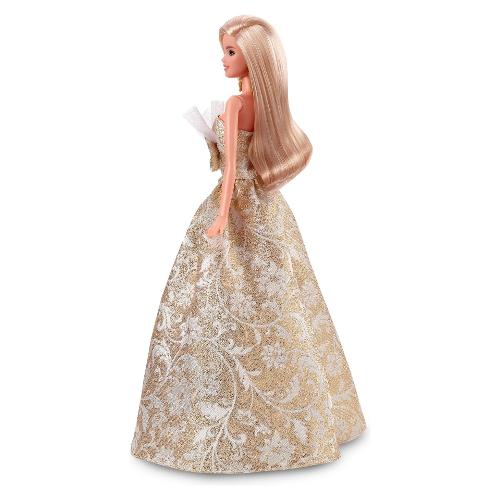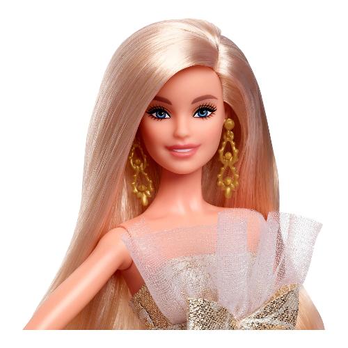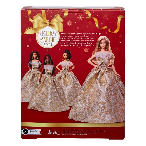 La bambola Barbie Magia delle Feste 2025 brilla come una stella dentro e fuori la confezione. Caratterizzata da splendide combinazioni di stampe damascate argentate e dorate sulla gonna, Barbie ruba la scena con il suo splendido abito senza spalline, con un bordo in tulle bianco con volant sul colletto. Barbie abbina il suo splendido abito a orecchini a goccia dorati e scarpe con tacco in oro perlato. I lunghi e bellissimi capelli biondi e il trucco completano il look classico. In una fantastica confezione per metterla in mostra, questa bambola da collezione è perfetta per i fan dai 6 anni in su. Include piedistallo e certificato di autenticità. La bambola non può reggersi in piedi da sola.