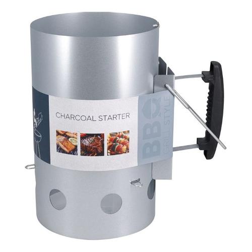 Vuoi accendere il tuo barbecue a carbonella in un attimo? Allora una ciminiera d'accensione è lo strumento ideale. Funziona come una ciminiera, riscaldando i bricchetti o la carbonella in modo incredibilmente rapido, permettendoti di iniziare subito a grigliare carne, pesce e verdure. Riempi la ciminiera d'accensione per tre quarti con bricchetti o carbonella e rimuovi la griglia superiore. Posiziona alcuni accendifuoco sulla base (griglia inferiore) del barbecue e accendili. Posiziona la ciminiera d'accensione piena sopra gli accendifuoco. I bricchetti saranno ora riscaldati dalle fiamme. L'effetto camino aumenta rapidamente il calore degli accendifuoco. I bricchetti saranno riscaldati dopo circa 30 minuti. Fase 5: Versa delicatamente i bricchetti o la carbonella nel barbecue e riposiziona la griglia sopra i bricchetti. Ora puoi iniziare a grigliare!