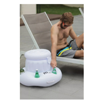 Progettato per galleggiare in perfetto equilibrio sull’acqua, questo pratico supporto è dotato di più scomparti per contenere bicchieri, lattine o bottiglie.