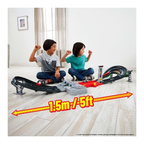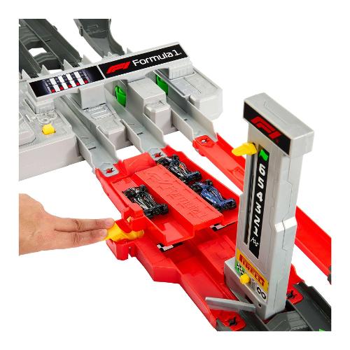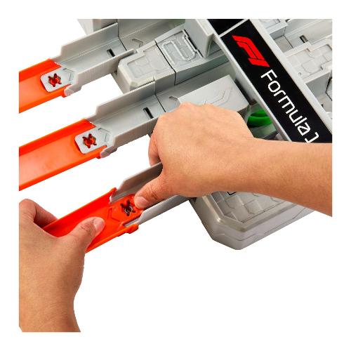 Ricrea le entusiasmanti corse del circuito del Gran Premio di Formula 1® con questa pista Hot Wheels. In modalità gara, il contagiri segue le macchinine mentre sfrecciano attraverso il booster a tre corsie e sfrecciano in curve dinamiche e cambi di pendenza, proprio come nelle vere strade. I bambini possono attivare il deviatore DRS interattivo che consente ai veicoli di superare il leader in curva: chi taglierà il traguardo per primo sarà il vincitore. In modalità infinita, puoi sfrecciare ininterrottamente con le tre macchinine di F1® incluse, regolando manualmente i deviatori per aumentare la competizione. Le piste presentano punti di connessione Speed Snap Track per ampliare la gara con altre piste e set. (piste e set Hot Wheels aggiuntivi in vendita separatamente).