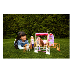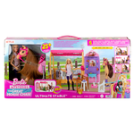 Ispirato alla serie Netflix Barbie Mysteries: The Great Horse Chase, questo playset Ultimate Stable con oltre 25 elementi è ricco di divertimento! Con sei aree di gioco, i bambini possono aiutare Barbie a prendersi del suo cavallo giocattolo con squisite verdure da mangiare alla stazione di alimentazione, a pulire e spazzolare il cavallo nell'area della toeletta, ad allenarsi alla staccionata da salto, ad appendere nastri o a fare scorrere le foto sulla parete del trofeo. Poi prenditi cura del roseto plug 'n' play. La stalla si chiude per riporla con facilità. La bambola non può reggersi in piedi da sola.