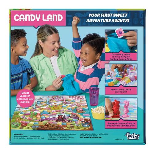 Benvenuti al gioco Candy Land! In questa versione rivisitata del classico gioco prescolare, i più piccoli scelgono un Sweet Scout, selezionano gettoni "caramelle" colorati dalla Bustina delle Meraviglie e percorrono il Sentiero delle Caramelle Arcobaleno fino al Castello di Caramelle! Chi incontreranno lungo il percorso e quale giocatore raggiungerà per primo il castello? Questa edizione include aggiornamenti che arricchiscono la storia, come 2 modalità di gioco (classica e ora collaborativa), un tabellone ingrandito e riillustrato, una bustina con coulisse contenente 50 gettoni caramelle in cartoncino, 5 gettoni scolpiti e una storia da leggere ad alta voce. È un dolce gioco per bambini, perfetto per le serate di giochi in famiglia, le feste, le vacanze e il divertimento quotidiano. Si gioca in circa 10 minuti! I giochi da tavolo per bambini, i giochi per famiglie e i giochi prescolari sono fantastici regali di compleanno e di festa per bambine, bambini e bambini dai 3 anni in su. Candy Land, Hasbro Games e tutti i marchi e loghi correlati sono marchi di Hasbro, Inc.