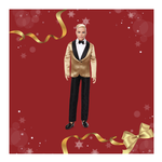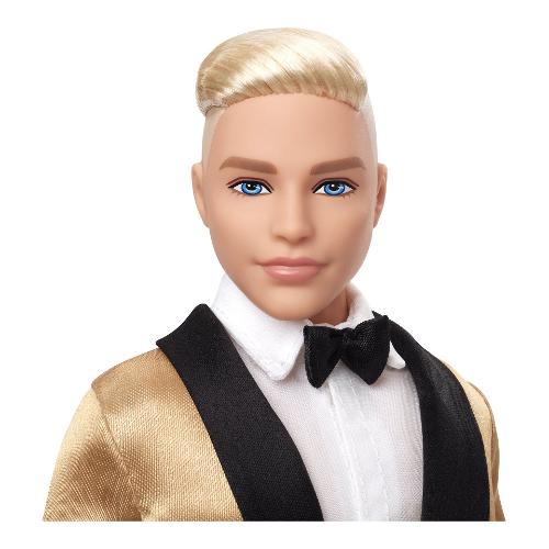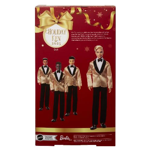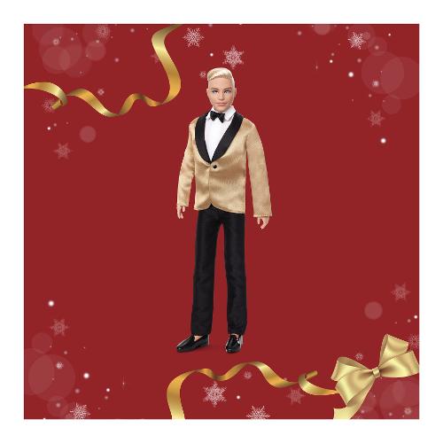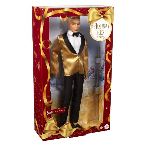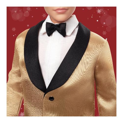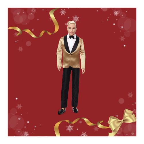 Ti presentiamo la nuova bambola Ken Magia delle Feste 2025, giusto in tempo per le festività! La bambola da collezione brilla come una stella dentro e fuori la confezione. La tuta elegante di Ken è impreziosita da una raffinata giacca dorata in raso, perfettamente abbinata a pantaloni e scarpe nere. La bambola abbina la sua splendida tuta elegante a una camicia bianca con colletto e a un papillon nero. I voluminosi capelli biondi fissi completano il look classico. In una fantastica confezione per metterla in mostra, questa bambola da collezione è perfetta per i fan dai 6 anni in su. Include piedistallo e certificato di autenticità. La bambola non può reggersi in piedi da sola.