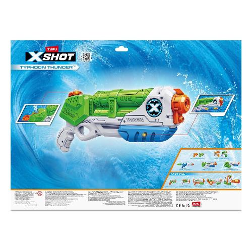 Il Typhoon Thunder ti consente di immergerti nella competizione senza occupare molto spazio. È leggero e può essere portato a qualsiasi battaglia d'acqua. Può contenere 500 ml di acqua all'interno della pistola, lasciandoti più tempo per giocare e meno tempo per riempire. getto d'acqua fino a 9 mt