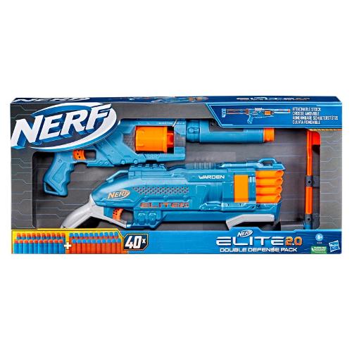 Questo set Nerf Elite 2.0 è il compagno ideale per gli amanti dell'azione e dei giochi di tiro. Contiene due potenti blaster e un totale di 40 freccette Elite ufficiali. Hai abbastanza munizioni per caricare completamente ogni blaster, e un gran numero di freccette aggiuntive per assicurarti che l"azione non si fermi mai. Che si tratti di epiche battaglie da solista o di emozionanti duelli con gli amici, questo pacchetto offre un'esperienza di gioco ininterrotta ed emozionante. Preparati per emozionanti avventure con Elite Install2.0. Nerf Elite 2.0 Double Defense Pack: sono inclusi due lanciatori Nerf - Warden DB-8 e Spectre Rev-5. Il Warden DB-8 è un lanciatore che funziona secondo il principio del pompaggio. Puoi sparare due frecce contemporaneamente. Per utilizzare il lanciatore, è necessario gonfiarlo prima di sparare altre due frecce. Le frecce di lancio vengono caricate dal lato della canna. Spectre Rev-5 è un lanciatore semiautomatico. Dispone di un caricatore girevole a 5 frecce. Per utilizzare il lanciatore basta premere il pulsante nella parte superiore del lanciatore. Entrambi i lanciatori hanno un binario tattico che può essere regolato in base alle proprie esigenze. Il set include anche 40 frecce in schiuma Nerf Elite che possono essere utilizzate su entrambi i lanciatori.