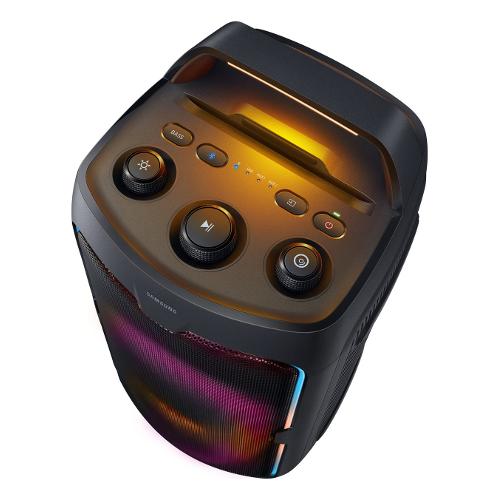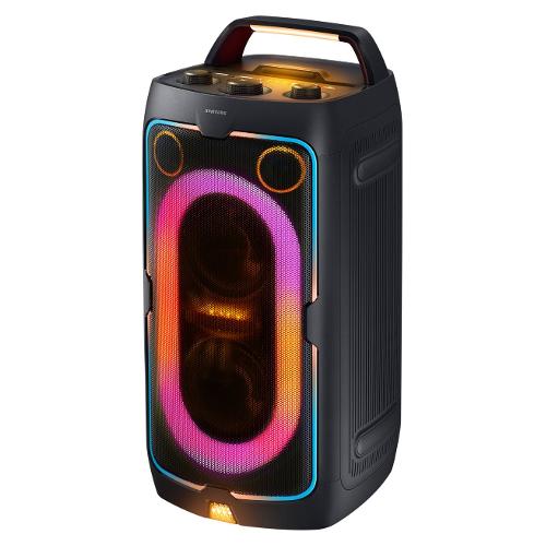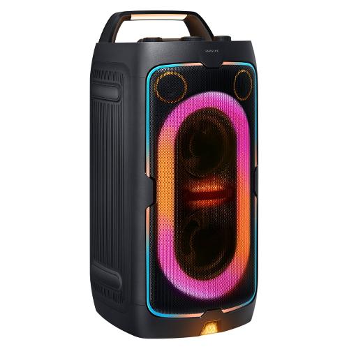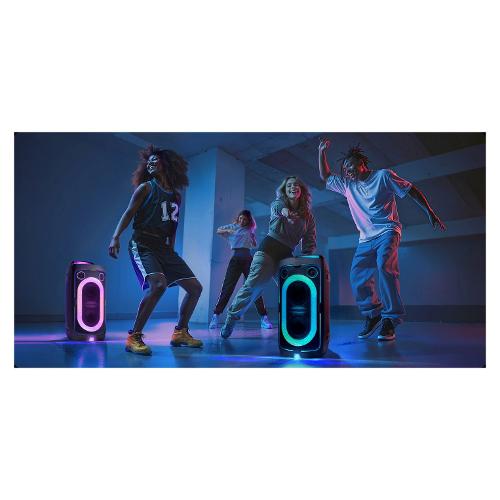 Lasciati avvolgere da un suono potente e di alta qualità con un nuovo design. Il doppio woofer e le tre modalità personalizzate per i bassi assicurano un suono intenso e profondo che si adatta a ogni contesto, da una serata in discoteca a un momento di relax. Inoltre, il doppio tweeter con waveguide assicura una copertura più ampia delle alte frequenze, per far risaltare ogni nota in modo più nitido e definito.