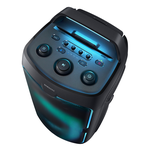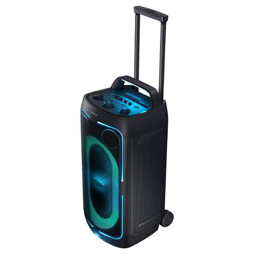 Lasciati avvolgere da un suono potente e di alta qualità con un nuovo design. Il doppio woofer e le tre modalità personalizzate per i bassi assicurano un suono intenso e profondo che si adatta a ogni contesto, da una serata in discoteca a un momento di relax. Inoltre, il doppio tweeter con waveguide assicura una copertura più ampia delle alte frequenze, per far risaltare ogni nota in modo più nitido e definito.