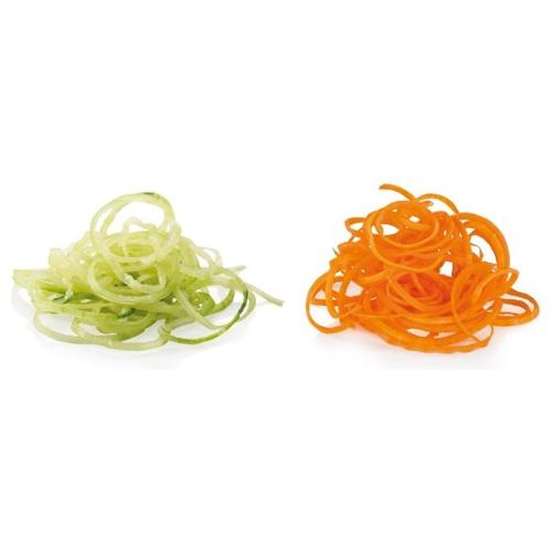 Per preparare in modo semplice e veloce golosi spaghetti di verdura non puoi fare a meno di questo utensile. Inserisci l’ortaggio nell’apertura e fallo ruotare. Lavabile in lavastoviglie