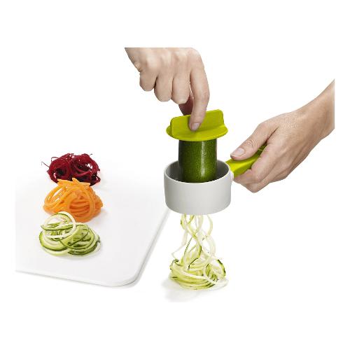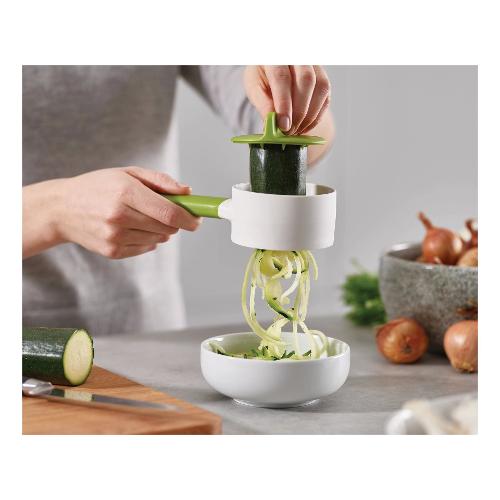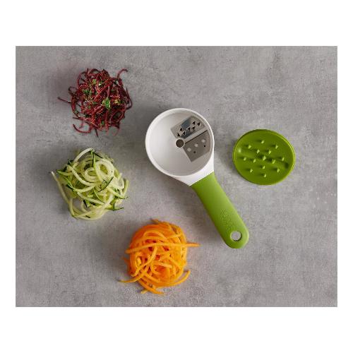 Lo spiralizzatore manuale Joseph Joseph Duo? è l?accessorio ideale per creare facilmente filamenti decorativi di verdure come zucchine, carote o cetrioli. Compatto e leggero (100 g), misura 18 x 7,8 x 4,2 cm ed è realizzato in nylon, plastica resistente e acciaio inox di alta qualità. L?impugnatura morbida garantisce comfort e controllo durante l?utilizzo, rendendolo pratico anche per un uso prolungato. Perfetto per preparare piatti sani e creativi o aggiungere un tocco estetico alle vostre portate, è lavabile in lavastoviglie per una pulizia semplice e veloce. Un alleato versatile per chi ama portare in tavola gusto e fantasia.