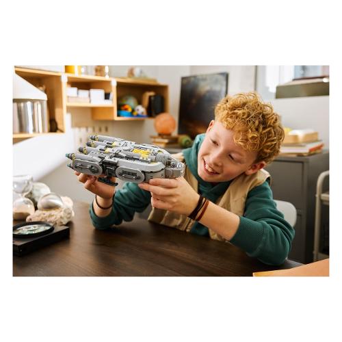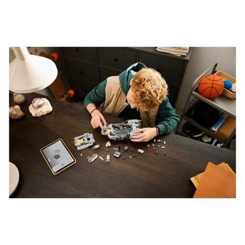 Costruisci e ripara i droidi a bordo dell’Astronave Anzellan (75445), proprio come in Star Wars: The Mandalorian e Grogu™, con questo set LEGO® Star Wars™ per bambini. Apri il tettuccio della cabina di pilotaggio e solleva il tetto dello scompartoprincipale per posizionare il personaggio LEGO di Grogu e 2 simpatici Anzellani all’interno di questa astronave altamente dettagliata. Usa le parti e gli attrezzi dei droidi nell’area dell’officina per costruire un Battle Droid (o rimuovi il banco da lavoro dall’astronave per giocare all’esterno). Metti i personaggi LEGO al tavolo con i biscotti blu o sul sedile accanto alla console. Quando è il momento di sbarcare, abbassa la rampa. Un fantastico regalo per i bambini, le bambine e i fan di Star Wars: The Mandalorian and Grogu™ dai 9 anni in su, questo modello di astronave in mattoncini è un ottimo modo per stimolare la creatività dei bambini. I bambini si divertiranno a costruire con l’app LEGO Builder, ingrandendo e ruotando il modello con le istruzioni 3D e salvando e tenendo traccia dei progressi, il tutto dall’app.