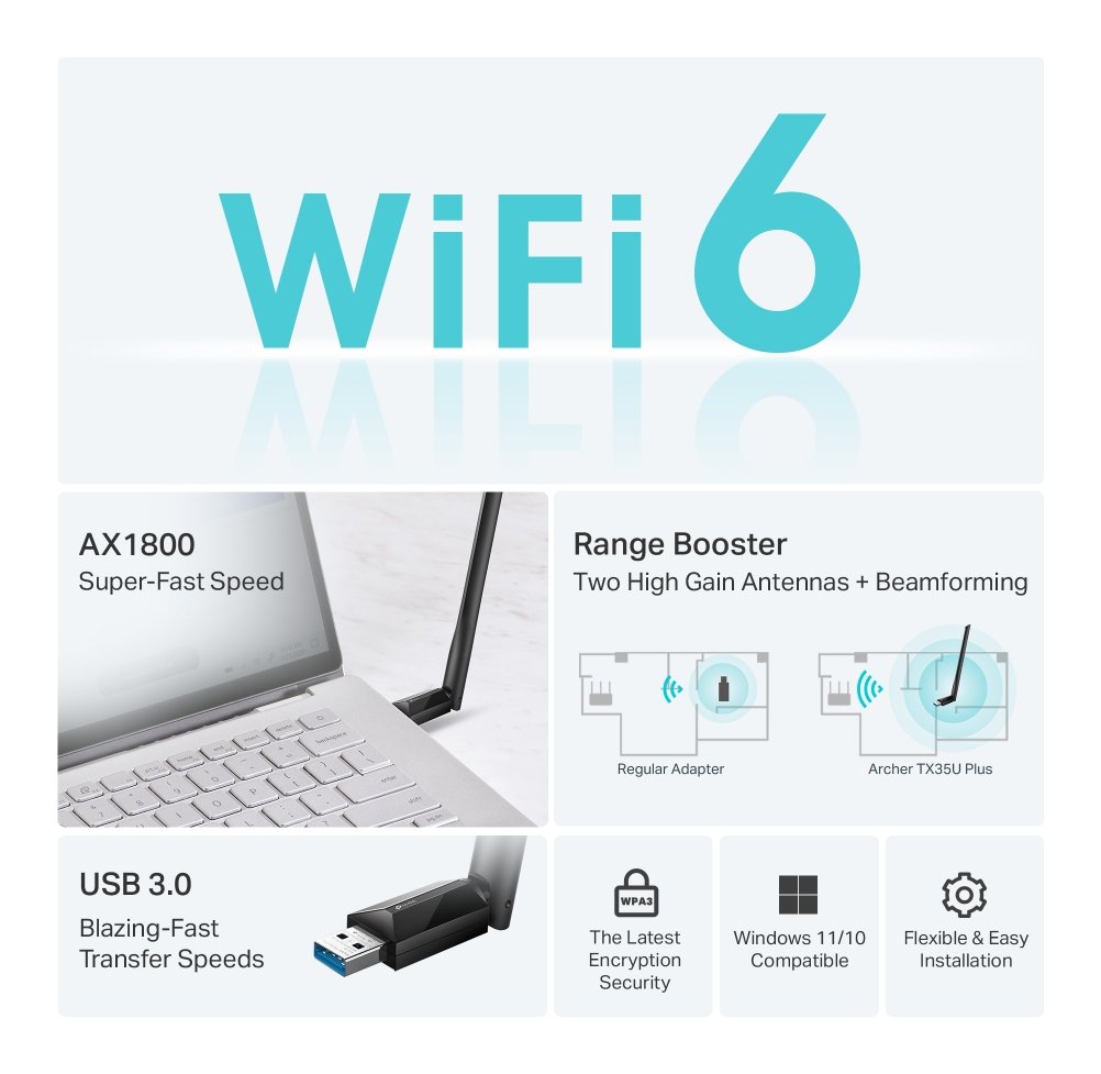 Archer TX35U Plus dota il tuo PC di Wi-Fi 6 per garantire una ricezione del segnale potente e continua, liberando il pieno potenziale del tuo router Wi-Fi 6.
