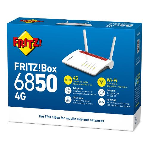 Internet flessibile tramite LTE : il FRITZ!Box 6850 LTE offre download veloci, la comodità di FRITZ! e una potente rete Wi-Fi . Con la stazione base DECT integrata per un massimo di sei telefoni e VoLTE tramite il numero di telefono SIM , sei perfettamente attrezzato per la navigazione mobile e le telefonate.