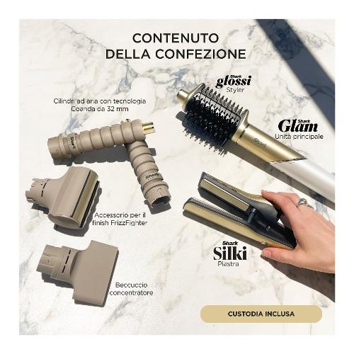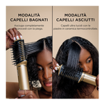 Styler e asciugacapelli con piastre in ceramica termocontrollate, flusso d’aria ad alta velocità e 5 accessori per lo styling. Include tutto ciò che serve: asciugacapelli, accessorio Silki, spazzola lucidante Glossi, accessorio per il Finish anticrespo FrizzFighter, beccuccio concentratore, cilindri autoavvolgenti, e custodia.
