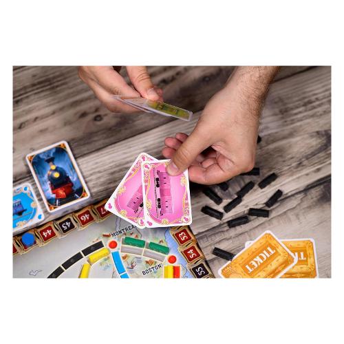 Un gioco di strategia su mappa, con pochissime regole. In Ticket to Ride i giocatori accumulano carte di vari tipi di treni per prendere il controllo delle linee ferroviarie che collegano le città di tutto il Nord America. Più sono lunghe le linee, più punti guadagneranno. È possibile guadagnare ulteriori punti completando i propri Biglietti Destinazione e collegando due città distanti fra loro o componendo il percorso ferroviario continuo più lungo. Quindi salite a bordo e preparatevi a una divertente avventura sui binari. È ora di Ticket to Ride!
