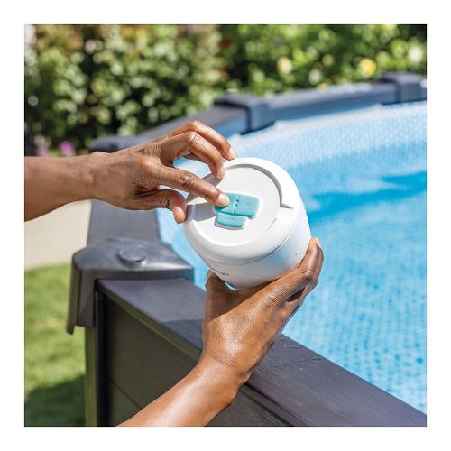 Appositamente progettato per farti risparmiare tempo e denaro sui prodotti chimici, Intex offre questo nuovo analizzatore d'acqua. Di' addio alle supposizioni: regola i trattamenti solo quando necessario, per un'acqua sana, equilibrata e perfettamente controllata. L'analizzatore Intex misura la temperatura dell'acqua, il pH e l'ORP (o potenziale Redox), tre parametri essenziali per comprendere la salute dell'acqua. Il pH consente di controllare l'equilibrio dell'acqua, fondamentale per il comfort dei bagnanti e l'efficacia del trattamento. La temperatura, invece, influenza direttamente il consumo di disinfettante e la crescita di microrganismi. Sulla base dei valori di pH e ORP, il dispositivo può calcolare il livello di cloro attivo presente nell'acqua. Questo dato è molto più rilevante del livello di cloro totale, poiché riflette la percentuale realmente efficace del disinfettante. L'ORP gioca un ruolo chiave in questo caso: non misura la quantità di cloro (o di altro disinfettante) presente nell'acqua, ma la sua effettiva capacità di disinfezione. In altre parole, indica l'efficacia della disinfezione dell'acqua, tenendo conto di tutti i parametri che influenzano l'efficacia del trattamento (pH, temperatura, inquinamento organico, ecc.). L'acqua può contenere cloro ma essere scarsamente disinfettata: l'ORP aiuta a evitare questo problema.