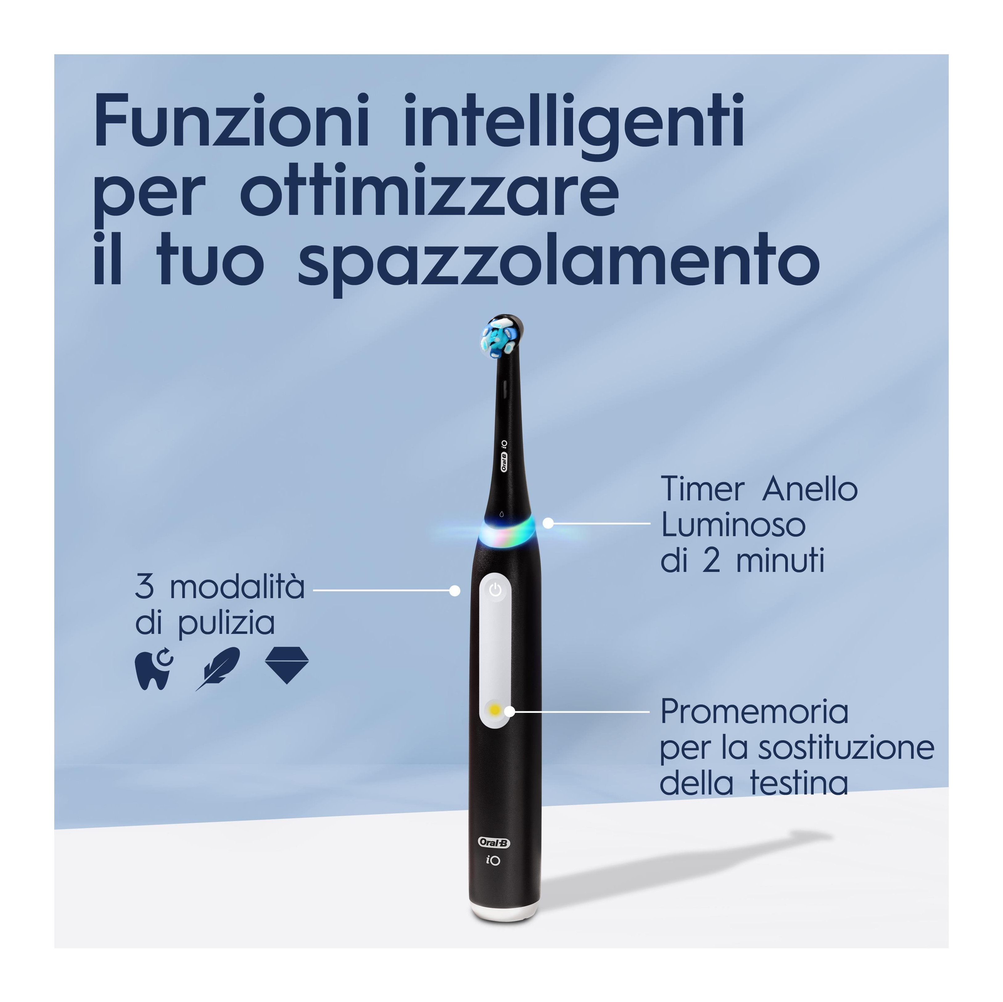 Lo spazzolino elettrico iO 3 presenta la migliore tecnologia Oral-B, combinando una testina rotonda ispirata agli strumenti dei dentisti con setole oscillanti per una sensazione di pulizia professionale ovunque tu sia. Custodia da viaggio in dotazione