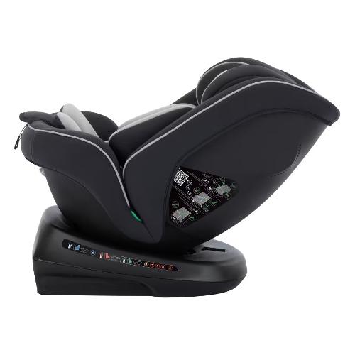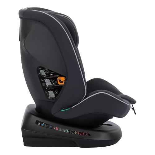 Il bambino può viaggiare in senso di marcia da 76 a 150 cm (da 76 a 105 cm in modalità bimbo piccolo e da 100 a 150 cm in modalità bimbo grande). Al momento di passare dalla posizione in senso contrario di marcia a quella in senso di marcia, la base girevole a 360° rende l'operazione semplicissima. La morbida seduta imbottita assicura che il bambino viaggi nel massimo del comfort durante ogni spostamento in auto.