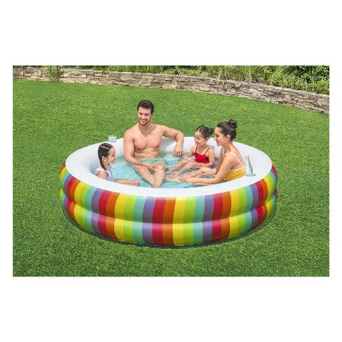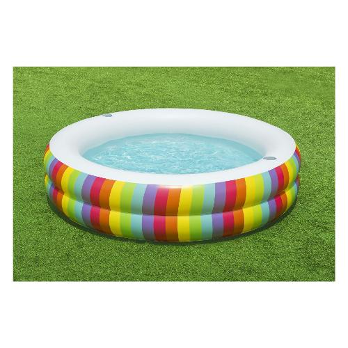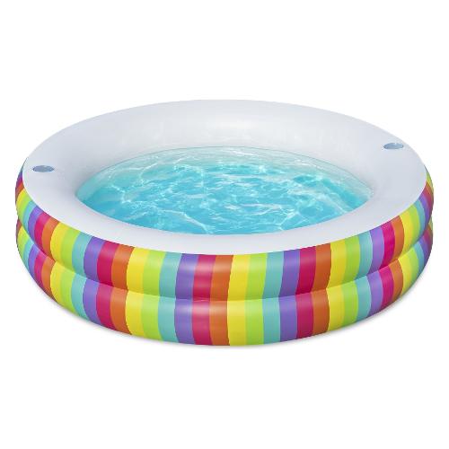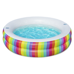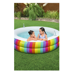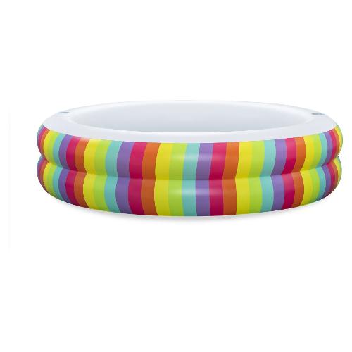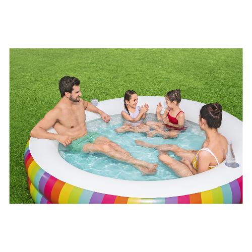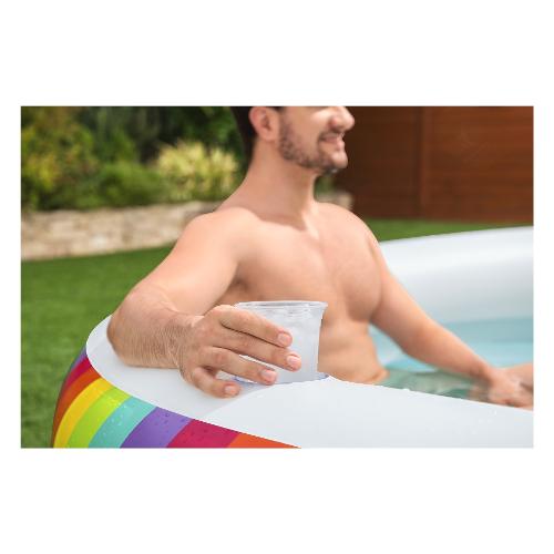 Scopri la piscina Bestway® Family Pool Rainbow Dreams™ e vivi momenti indimenticabili in acqua! Con dimensioni da gonfiata di Ø 206 x 51 cm, offre ampio spazio per puro divertimento in acqua. Grazie al resistente PVC e alle pareti laterali extra larghe, è durevole e stabile. Con un'impressionante capacità d'acqua di 632 litri, è perfetta per bambini dai 6 anni in su. Il vivace design arcobaleno aggiunge un tocco di colore e crea un'atmosfera allegra. Due portabicchieri ti permettono di gustare bevande rinfrescanti direttamente in piscina. La confezione include non solo la piscina stessa, ma anche una pratica toppa di riparazione per piccole forature.