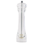 Macinapepe/macinasale in acrilico con macina in ceramica ed altezza di 20 cm. Realizzato in acrilico trasparente, possiede una lama che si deteriora difficilmente e permette un'elevata qualità di macinatura dei grani di pepe e di sale, liberandone tutto l'aroma. Inoltre, vista l'assenza di metallo, non esiste nessuna possibilità che il meccanismo arrugginisca con i conseguenti odori sgradevoli, garantendo così un aroma ed un sapore sempre fresco del pepe e del sale. Avvitando il pomolo posto sulla parte superiore, si può graduare la macinatura, ottenendo una grana più o meno fine a seconda dei gusti. Per mantenere in efficienza il macinapepe/sale si sconsiglia di lavarlo con acqua o in lavastoviglie, ma di tenerlo sempre al riparo dall'umidità e pulirlo esclusivamente con panni asciutti. Se il macinapepe/sale è vuoto si raccomanda di evitare di macinare poiché la macina potrebbe danneggiarsi.
