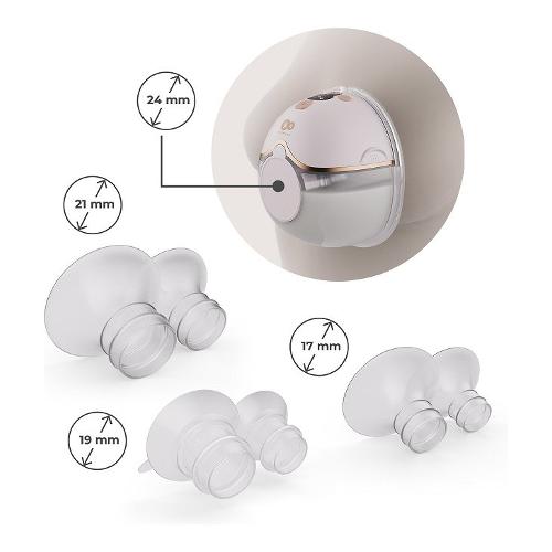 estrazione alle esigenze della mamma; Coppe da 24 mm capacità 160 ml con interno delicato e morbido; Spegnimento automatico; 3 misure di riduttori incluse: 21 mm, 19 mm, 17 mm – facile