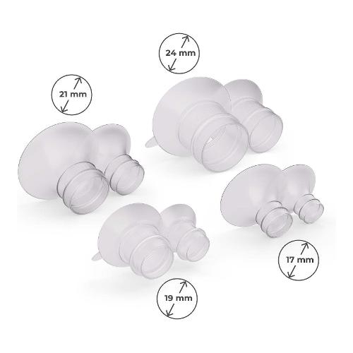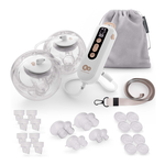 Caratteristiche principali: Batteria capiente da 1800 mAh – fino a ca. 180 minuti di utilizzo con una sola carica; Tempo di ricarica ca. 120 minuti; 3 modalità e 9 livelli – possibilità di regolare la potenza e il ritmo di estrazione; Coppe da 27 mm con capacità di 180 ml ciascuna; Fino a 4 misure di riduttori incluse: 2×24 mm, 2×21 mm, 2×19 mm, 2×17 mm – facile adattamento del tiralatte a diversi capezzoli; Funzione di memorizzazione dell’ultimo programma – il tiralatte si avvia con l’impostazione preferita della mamma; Spegnimento automatico al termine del funzionamento; Possibilità di utilizzo anche su un solo seno; Timer per controllo del tempo di estrazione; dotato di cavo USB-C, laccetto e borsa custodia, 6 membrane e valvole (una scorta di parti che garantisce circa 1 anno di allattamento)