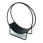 Porta legna Round Design manici pelle acciaio (50x23x56cm) Nero 21325
