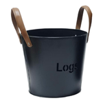 Porta legna secchio Small Wood manici pelle acciaio (35x31cm) Nero 28429SM