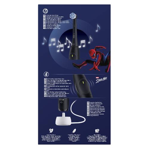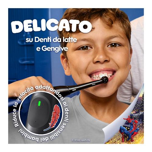 Lo spazzolino elettrico Oral-B iO Kids 6+ offre ai bambini il divertimento con Spiderman insieme alla pulizia delicata ed efficace di uno spazzolino Oral-B progettato con e approvato dai dentisti. iO è la migliore tecnologia per bambini di Oral-B. L'esclusiva testina piccola e rotonda è progettata specificamente per i bambini, con setole extra morbide efficaci contro la carie e delicate su gengive e denti da latte.