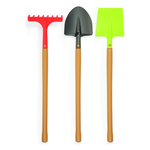 Gli strumenti essenziali, robusti e leggeri, facili da maneggiare per qualsiasi piccolo esperto di giardinaggio: Pala a punta rotonda, utilizzata per lavori in cui è necessario scavare, poiché la struttura arrotondata termina a punta rende più facile gonfiarla sulla terra;