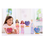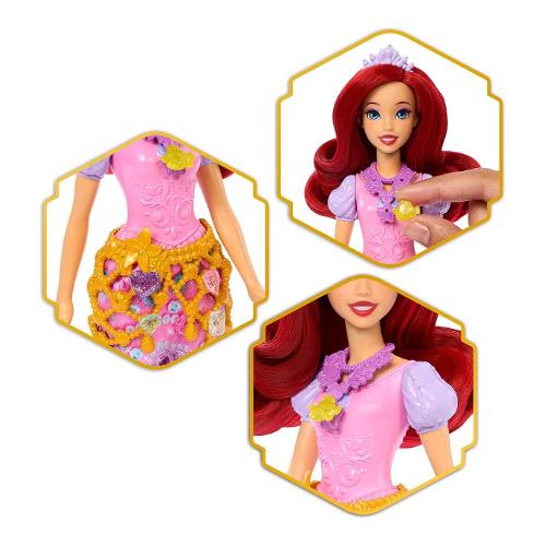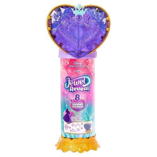 Con una bambola alla moda e accessori a sorpresa, Ariel Jewel Reveal della Disney unisce storie e mistero per un'incantevole esperienza! Apri il luccicante cuore viola sulla parte superiore e usa la 'chiave' come anello da indossare! Ti attendono tantissime sorprese, tra cui una bellissima bambola Ariel alla moda, gioielli e accessori come le scarpe e una tiara. Fissa il cuore alla base della confezione per creare un divertente portagioie con ripiani per riporre tutti gli accessori. Applica le gemme alla gonna o alla collana di Ariel per prepararla a una giornata di avventure! Ariel snodata indossa una gonna rimovibile con stampe di gioielli e include capelli lunghi spazzolabili per un divertimento senza fine.