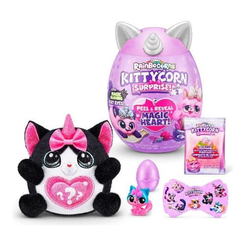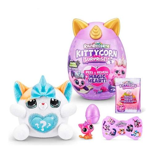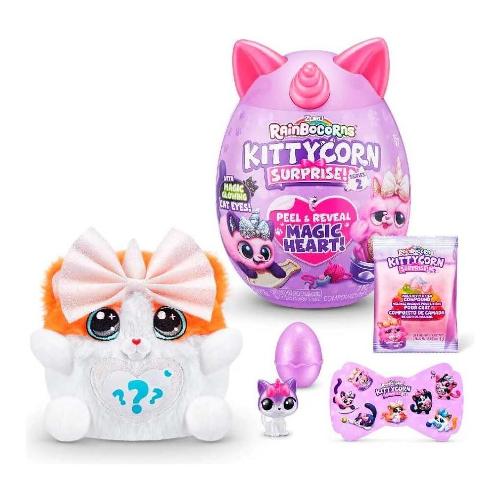 I Rainbocorn sono l'uovo a sorpresa per eccellenza! Combinando unboxing misterioso, sorprese stravaganti e peluche teneri, i Rainbocorn diventeranno sicuramente i vostri nuovi migliori amici! I Rainbocorns Kittycorn Surprise sono destinati a diventare il tuo nuovo amico a 4 zampe! Questi gattini sono dotati di occhi che brillano nell'oscurità. Stacca il cuore dal tuo Rainbocorn per rivelare ciò che amano! ! Ci sono 10 sorprese all'interno tra cui un composto appiccicoso per gattini e adesivi! Adotta tutti e 6 i gattini, incluso il raro gattino con fiocco grande!