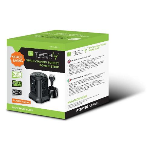 Multipresa verticale salvaspazio 12in1: otto prese UNEL Italiana/Schuko con due prese di ricarica USB tipo A e due prese USB-C