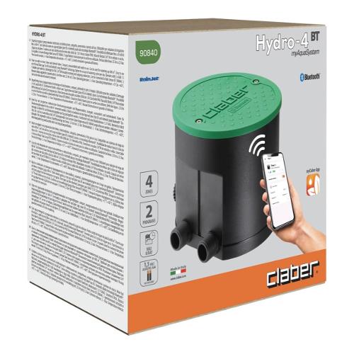 Pozzetto integrato di programmatore elettronico ed elettrovalvole, compatto, premontato e pronto all’uso. Utilizzabile per soluzioni di irrigazione fino a 600 m². Permette di aprire e chiudere fino a 4 linee indipendenti d’irrigazione interrata o a goccia. Facilissimo da usare con app myClaber (per iOS e Android) grazie alla tecnologia Bluetooth®. Irrigazione da 1 a 120 minuti. 2 programmi per ciascuna uscita, fino a 8 cicli di irrigazione al giorno. Impostazione settimanale con esclusione dei giorni. Funzione manuale 15 minuti (modificabile fino a 120 min) oppure possibilità di attivare in modalità manuale i programmi preimpostati. Water Budget per variare da 50% a 150% l’irrigazione. Tenuta stagna IP 68: il più alto grado di sommergibilità. Attacchi filettati 3/4” M in entrata e uscita. 5 tappi filettati in dotazione per le uscite non utilizzate. Collegabile al sensore di pioggia Rain Sensor BT (90844) via Bluetooth®. Portata delle linee: 25 l/m a 2,5 bar. Pressione di esercizio: 2 - 6 bar. Temperatura di esercizio: +5°C +60°C.