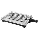 Dotata di un rivestimento in acciaio inox, garantisce resistenza e facilità di pulizia, mentre la struttura completamente smontabile consente una manutenzione semplice e veloce. Le dimensioni della griglia sono di 26x37 cm, ideali per una cottura uniforme e rapida degli alimenti. Questo modello presenta una griglia doppia apribile, che facilita l’inserimento e la rimozione del cibo durante la cottura, e dispone di un’unica temperatura regolabile per una gestione intuitiva e immediata. Il cavo di alimentazione lungo 88 centimetri assicura una buona libertà di posizionamento.