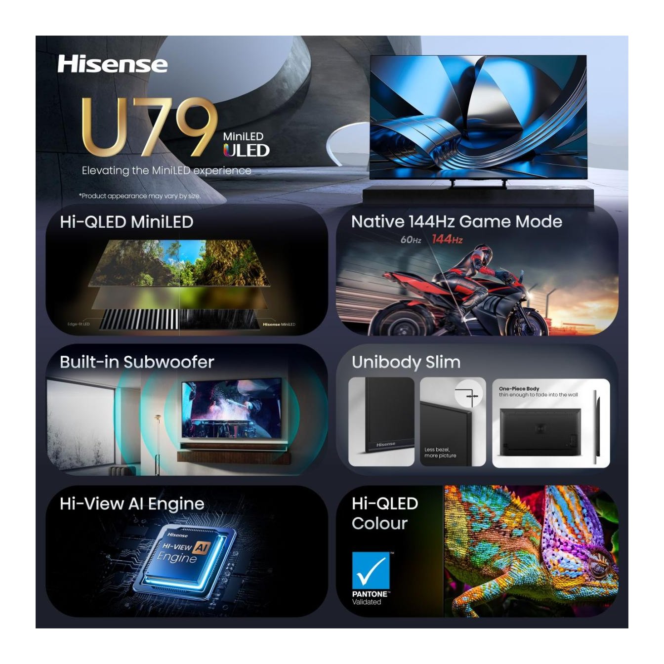 Grazie alla tecnologia Hi QLED MiniLED, potrai godere di un'elevata luminosità e di un contrasto intenso, che faranno risaltare con chiarezza i dettagli più sottili sia nelle aree scure che in quelle chiare. I neri diventano più intensi, i colori più brillanti e ogni immagine rimane incredibilmente nitida, anche di giorno.