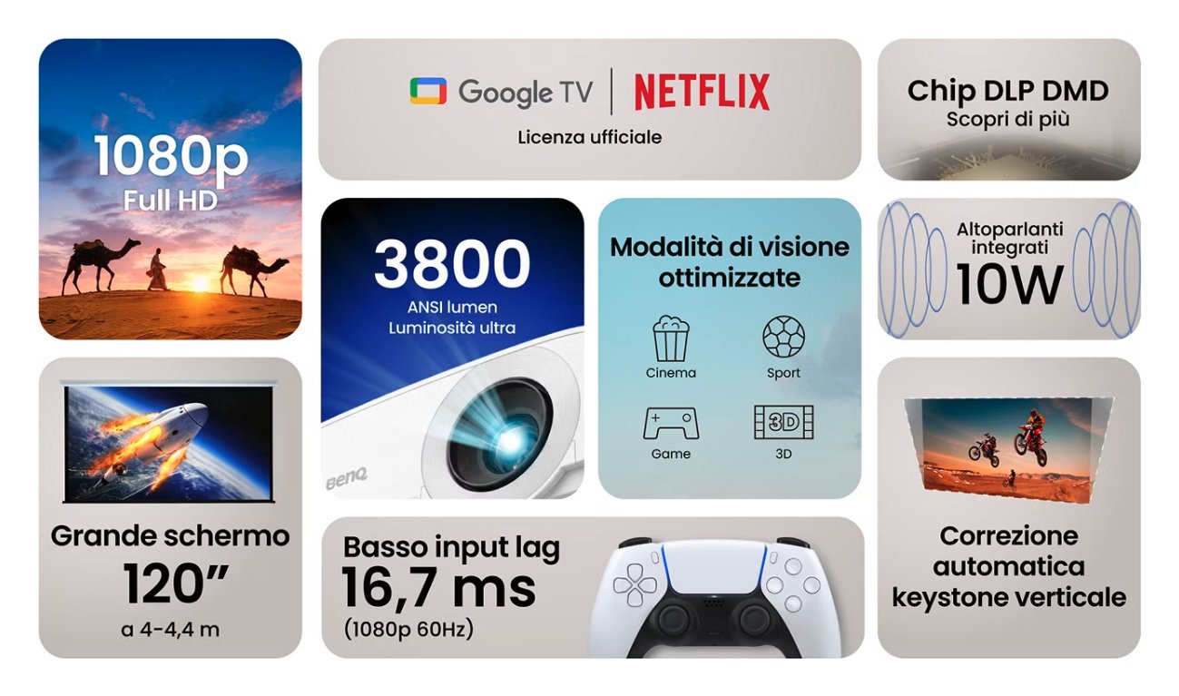 Smetti di preoccuparti della luce ambientale. BenQ TH575i offre 3.800lm di alta luminosità per giochi, sport e film in 1080p vividi anche nel tuo soggiorno. Vivi un’esperienza brillante su grande schermo, di giorno e di sera.
