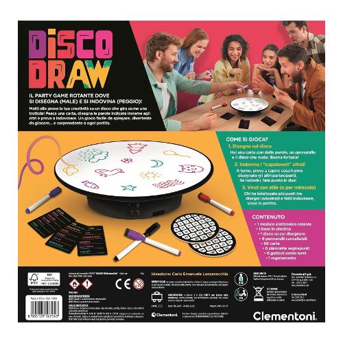 i giocatori disegnano contemporaneamente su una lavagna che ruota. Difficile sarà disegnare, divertente indovinare.